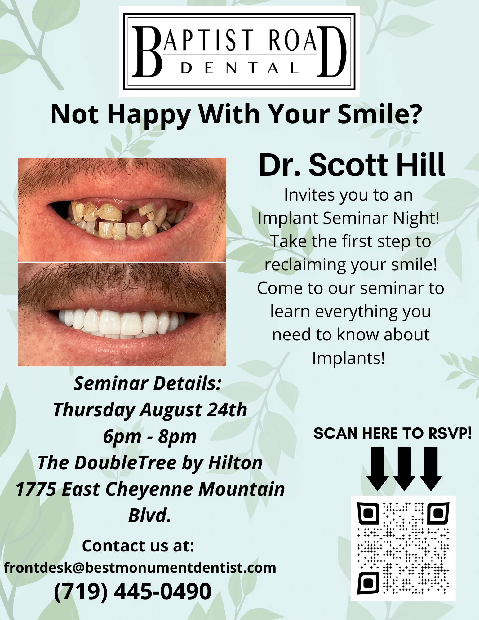 Dr. Scott Hill has been transforming smiles—and lives—through dental implants since 2014. He has successfully placed over 2,500 dental implants and focuses his practice on full-arch implant rehabilitation, helping patients regain their ability to eat, smile, and live with lasting confidence.